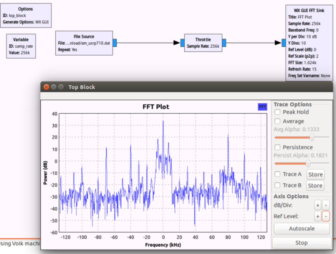 - 连接“File Source、Throttle、WX GUI FFT Sink”模块