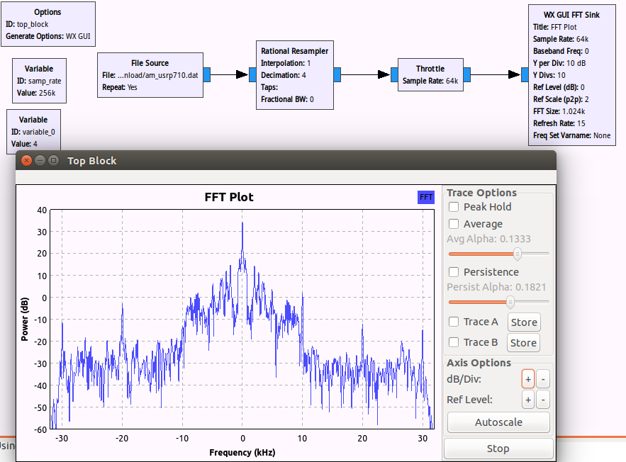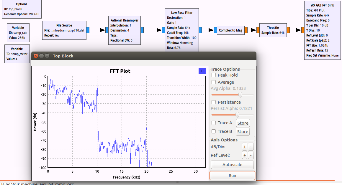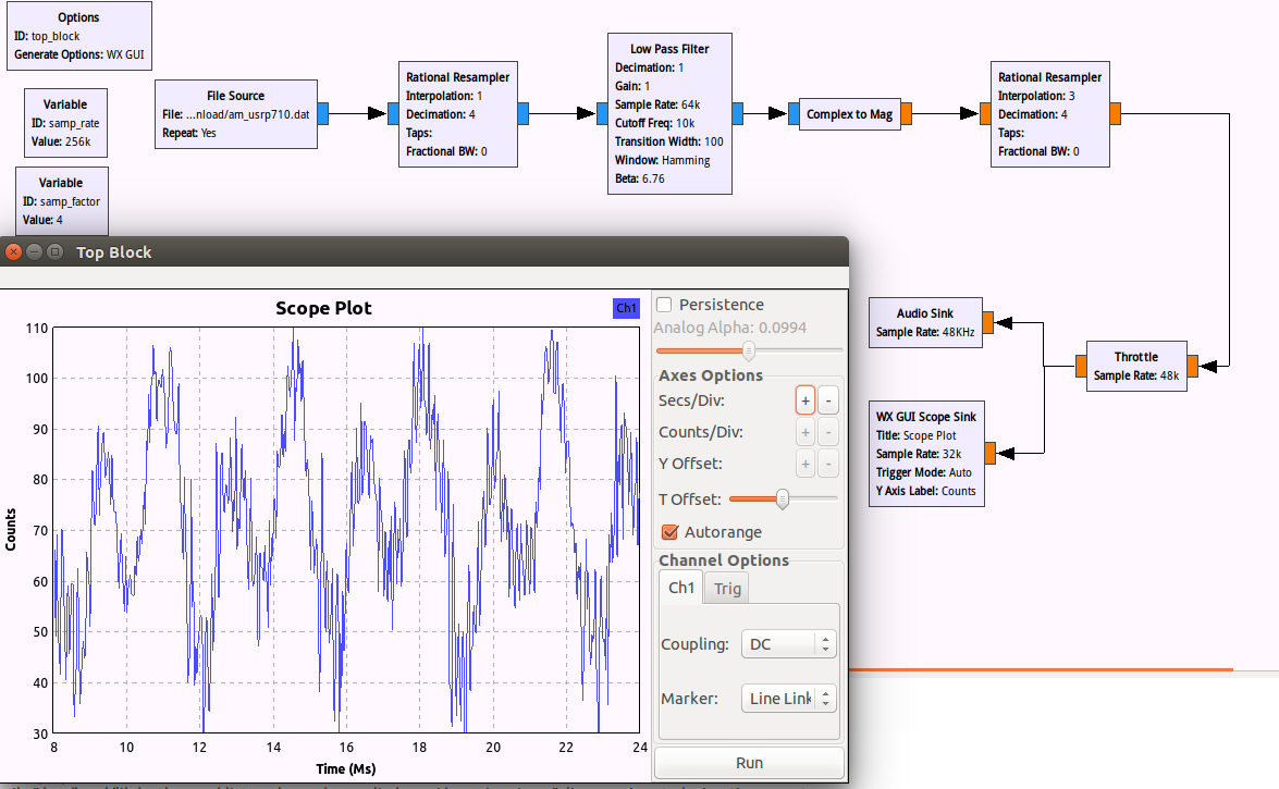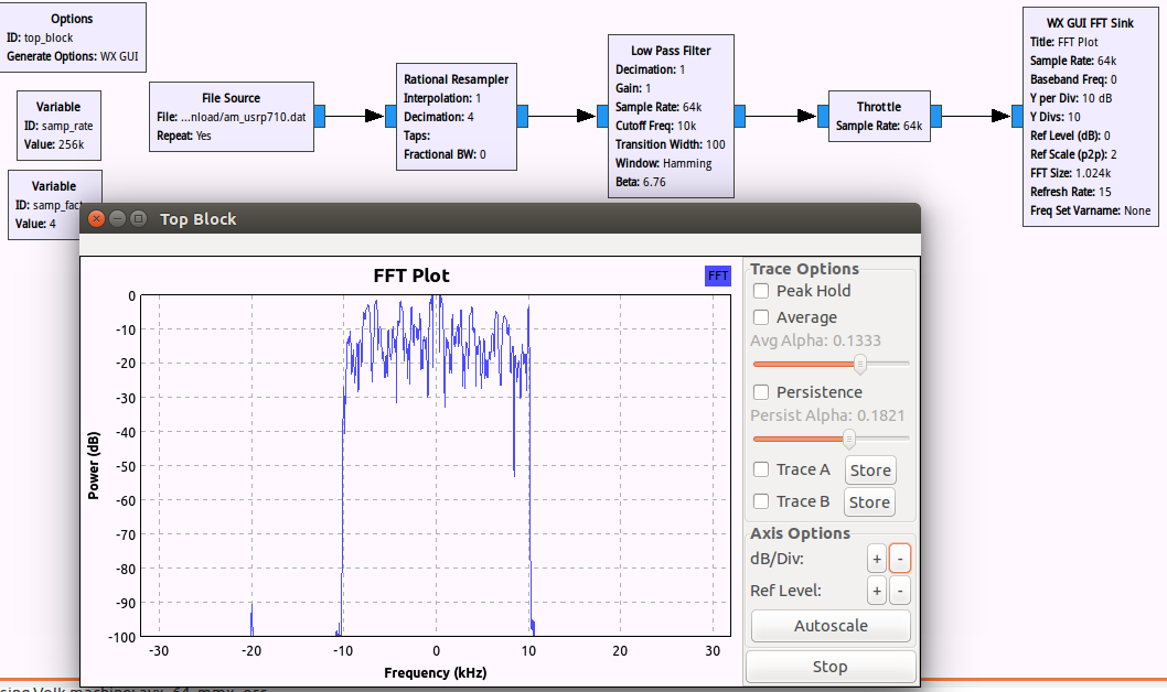 - 使用一个 Variable 模块和“Rational Resampler”模块